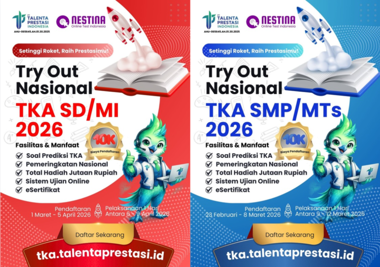 Dalam rangka mendukung kesiapan peserta didik menghadapi Tes Kemampuan Akademik (TKA) Tahun 2026, Talenta Prestasi Indonesia (TAPRESNESIA) secara resmi menyelenggarakan Try Out Nasional TKA 2026 untuk jenjang SD/MI dan SMP/MTs.